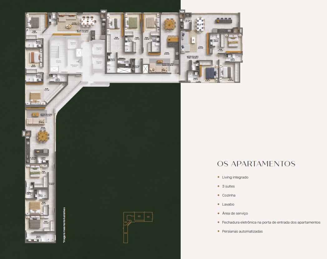 101,52m² e 113,79m² privativos