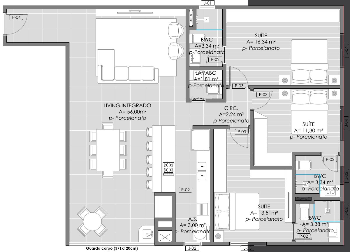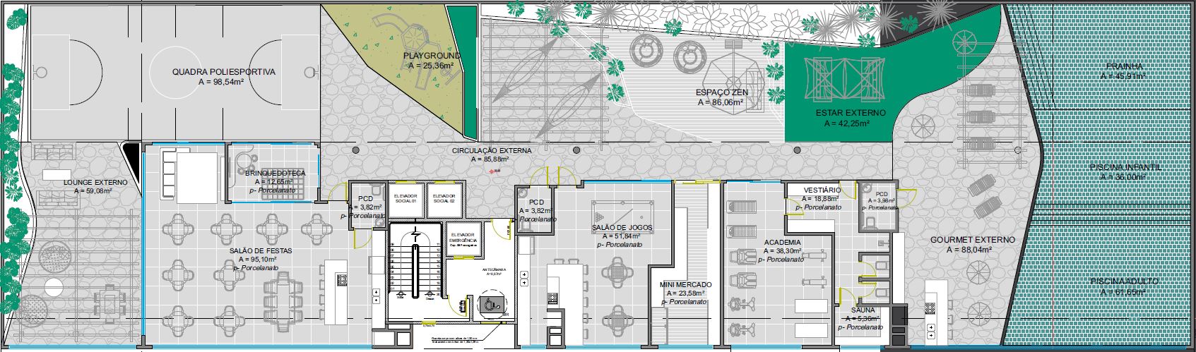 - 2 elevadores (01 social e 01 de serviço) grandes de última geração.