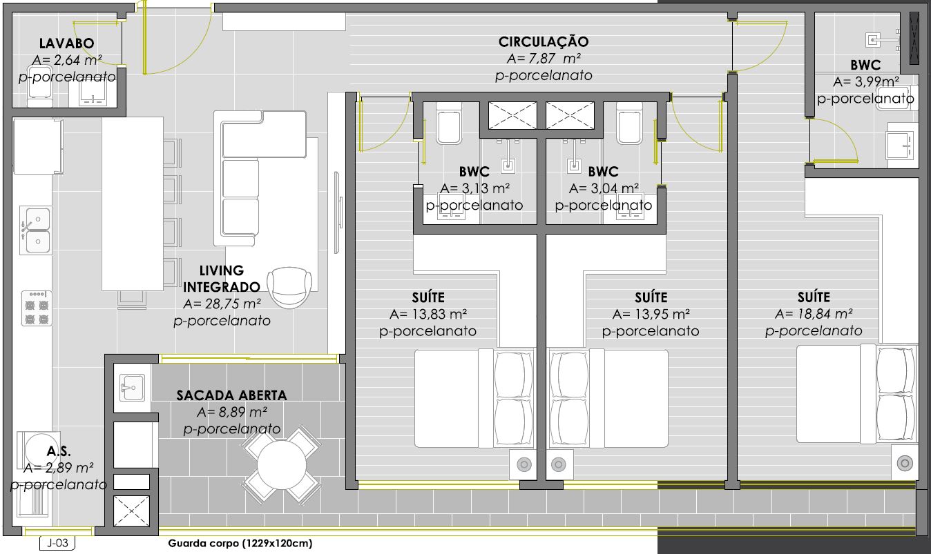 - 3 apartamentos por andar
