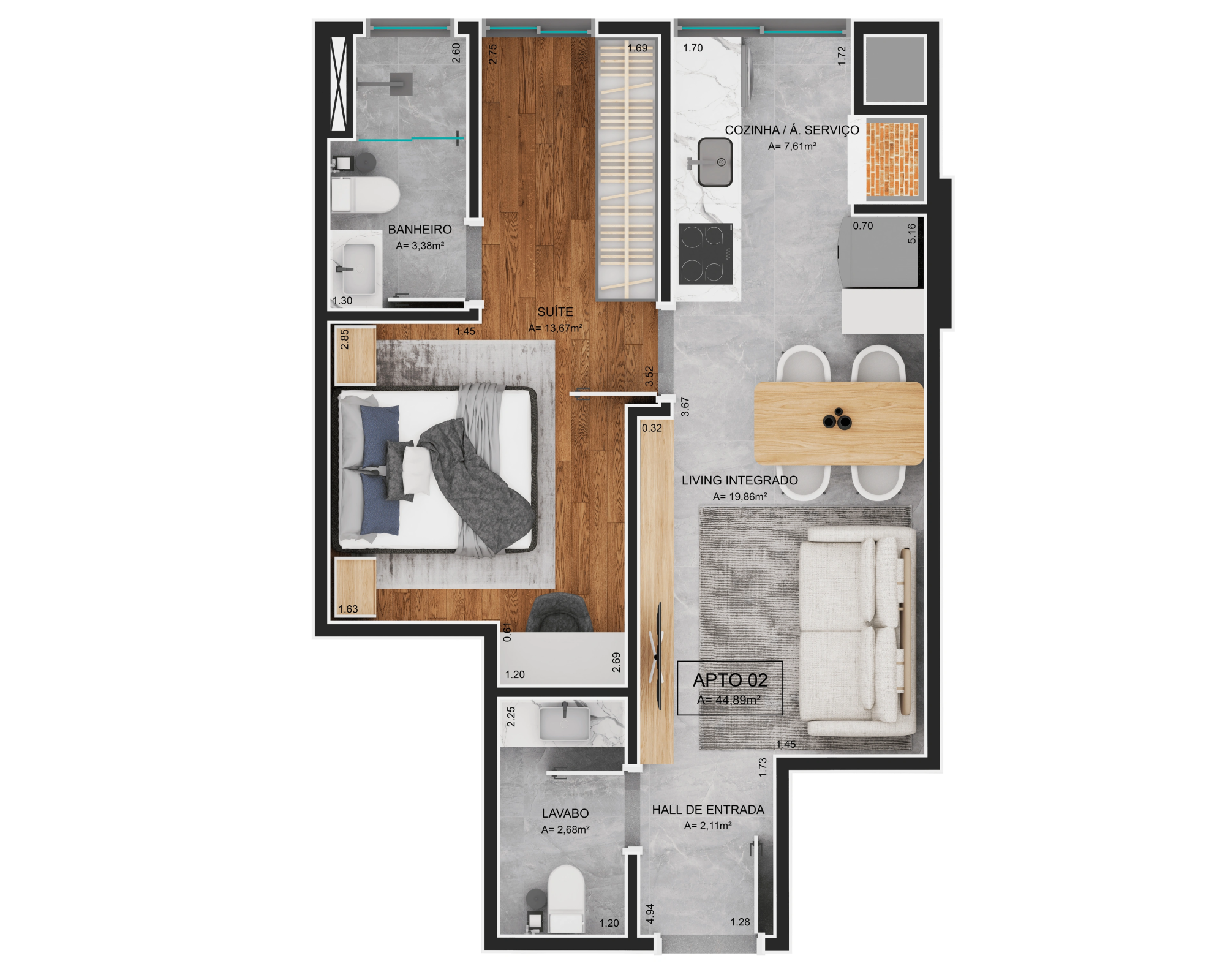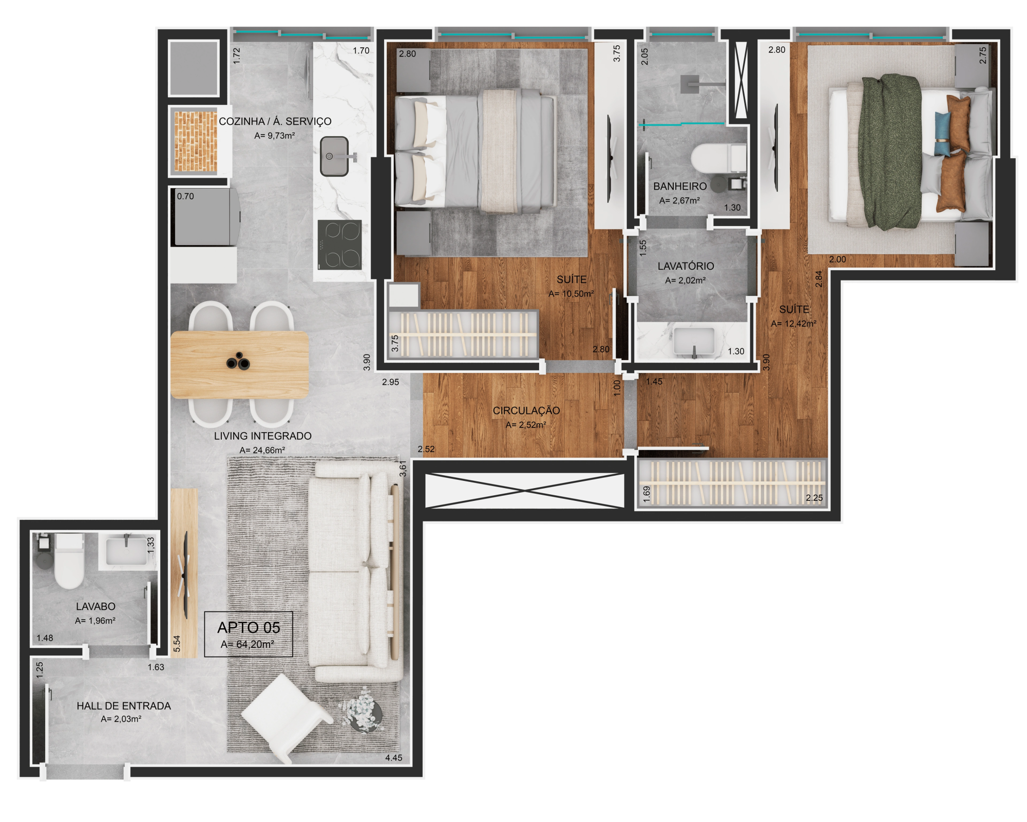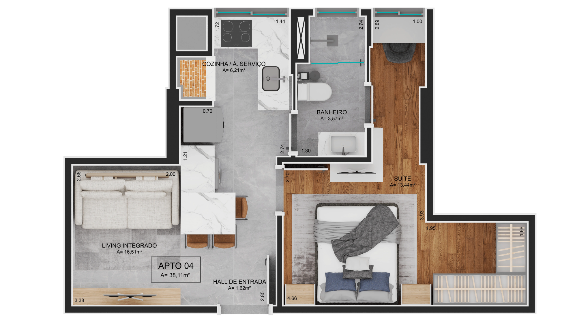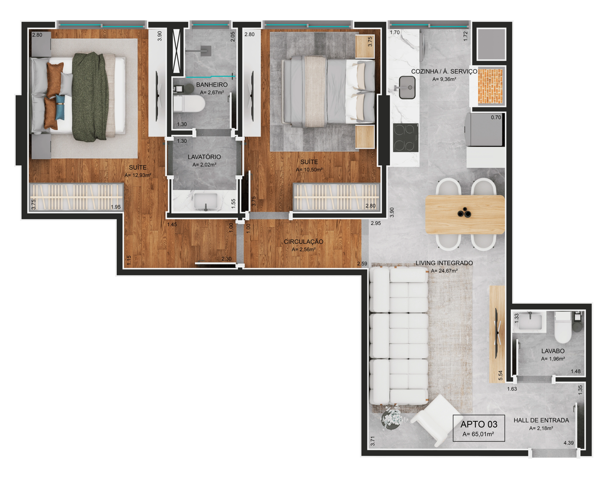 38,11m² a 77,12m² privativos